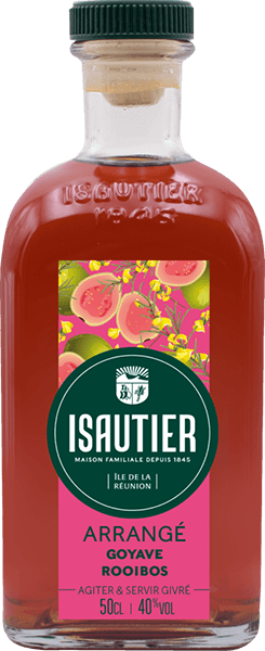 Rhum arrangé à la goyave et au rooibos avec des notes fruitées et florales.