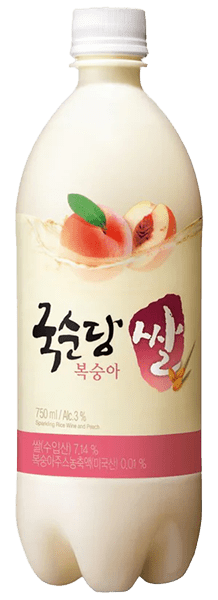 Boisson traditionnelle coréenne douce à base de riz fermenté aromatisée à la pêche. À déguster bien frais en accompagnement de plats coréens.