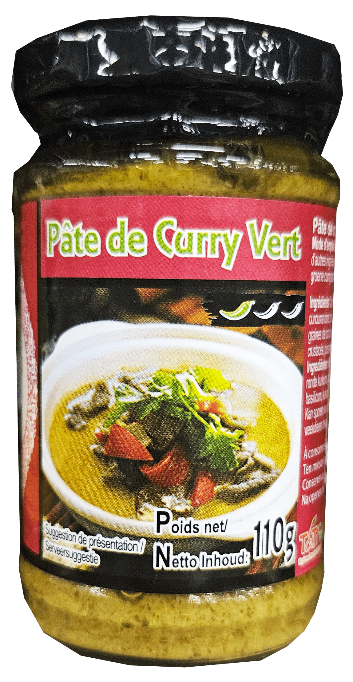 Pâte thaïlandaise relevée à base de piments verts, herbes et épices fraîches. Idéale pour préparer des currys verts parfumés, sautés, marinades et plats mijotés.
