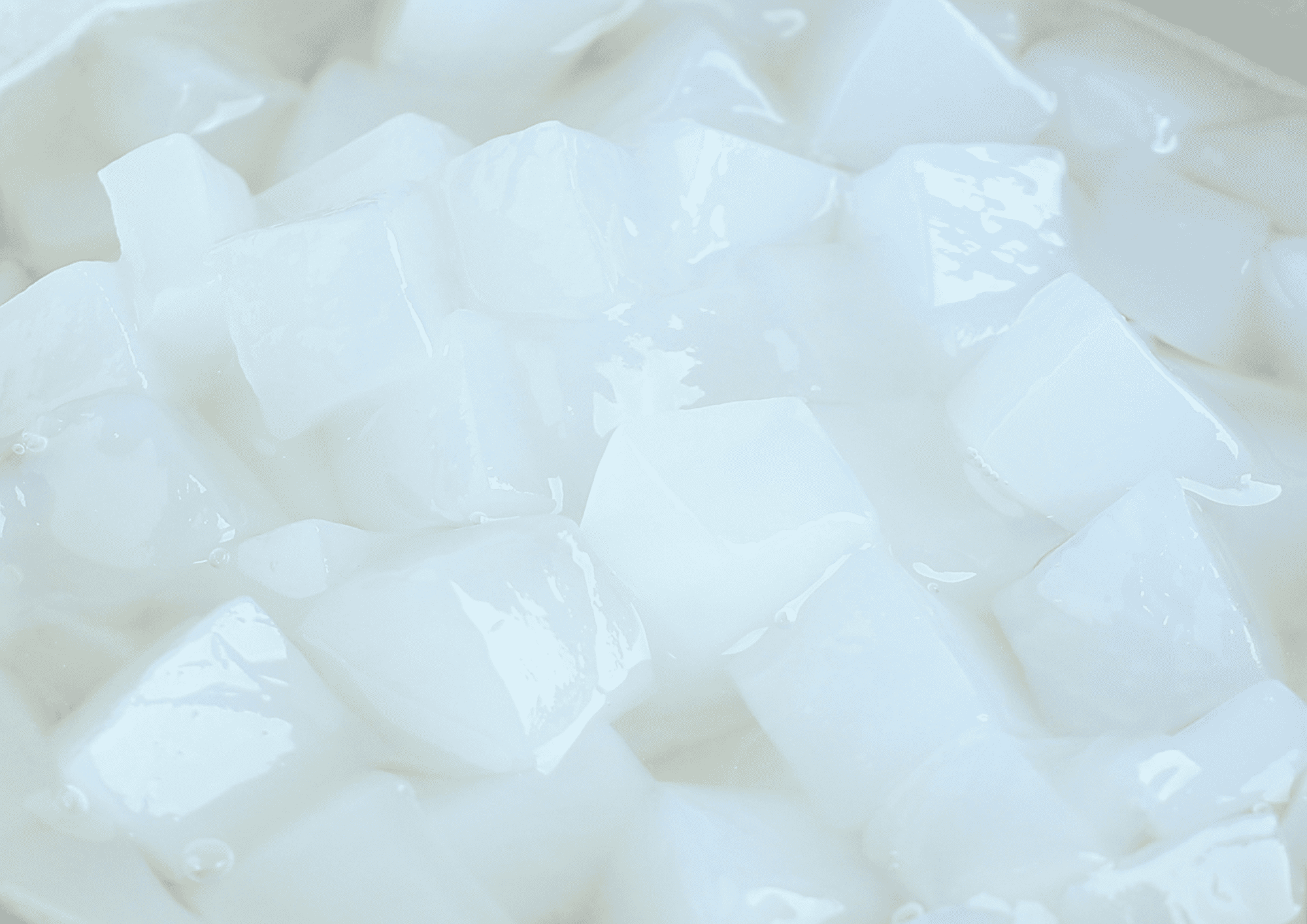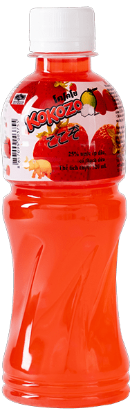 Boisson rafraîchissante au jus de litchi agrémentée de morceaux de nata de coco.