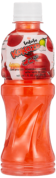 Boisson rafraîchissante au jus de grenade agrémentée de morceaux de nata de coco.