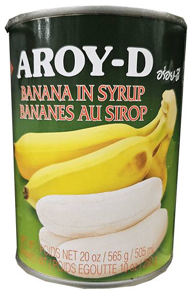 Bananes entières moelleuses conservées dans un sirop sucré et parfumé. Parfaites pour desserts, salades de fruits, gâteaux ou préparations exotiques.