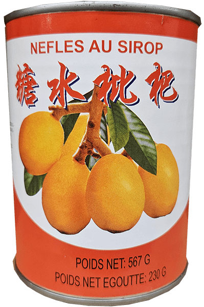 Nèfles sucrées au sirop, à la chair tendre et légèrement acidulée. Parfaites en dessert, salade de fruits ou accompagnement frais et exotique.