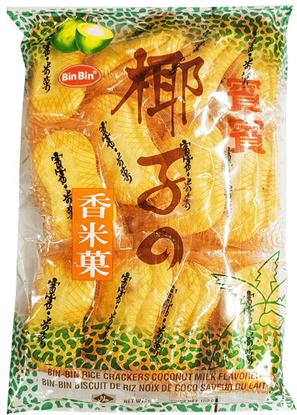 Crackers style senbei japonais à base de riz, croustillants et légèrement sucrés aromatisés à la noix de coco.