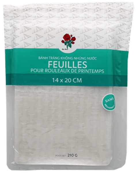 Galettes de riz vietnamiennes déjà réhydratées parfaites pour des rouleaux de printemps ou nems. lles offrent une texture fine et légère.