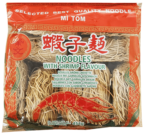 Nouilles asiatiques fines à base de blé, aromatisées à la crevette pour une saveur marine délicate. Parfaites pour soupes, sautés, woks et plats de fruits de mer.