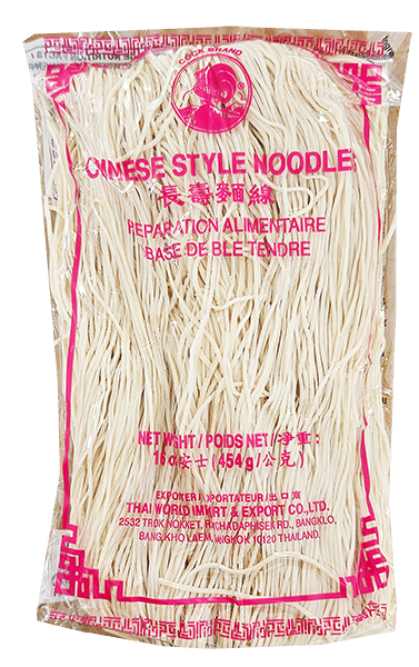 Nouilles chinoises séchées à base de blé, souples et légères après cuisson. Idéales pour sautés, soupes, woks ou plats en sauce asiatiques.