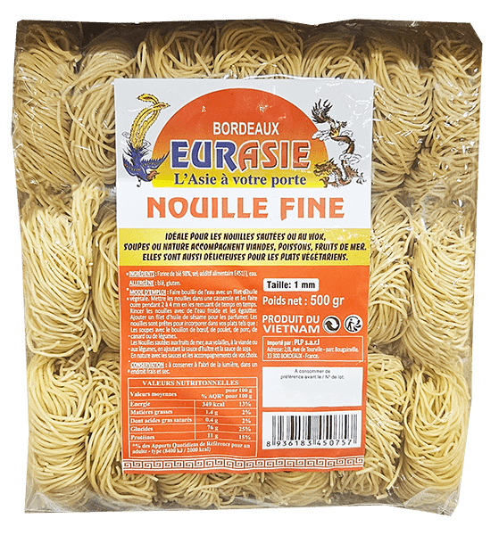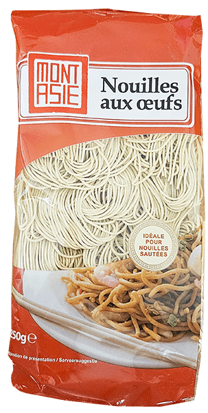 Nouilles asiatiques fines à base de blé et d’œufs, à la texture ferme et dorée. Idéales pour sautés, soupes, woks et plats en sauce.