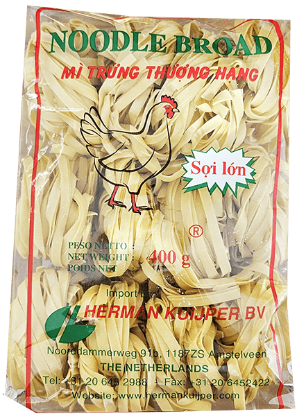 Nouilles asiatiques larges à base de blé et d’œufs, à la texture ferme et dorée. Idéales pour sautés, soupes, woks et plats en sauce.