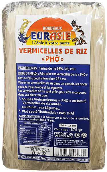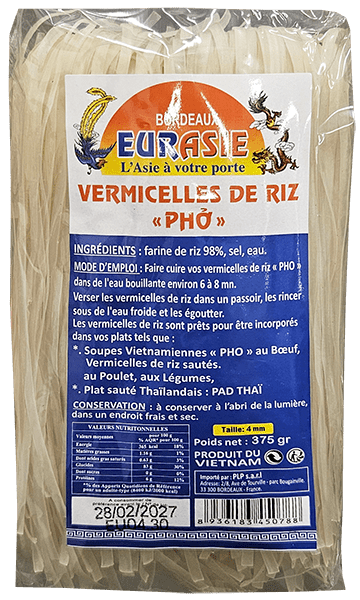 Nouilles de riz fines souples et légère à la texture fondante après cuisson. Idéales pour woks, soupes phô, pad thaï ou rouleaux de printemps.