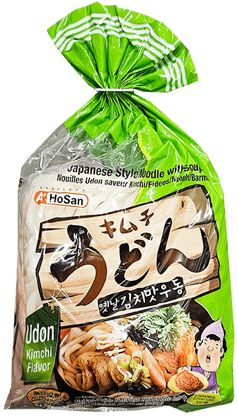 Nouilles japonaises épaisses aromatisées au kimchi. Parfaites pour un repas rapide et savoureux, à déguster sautées ou en soupe.