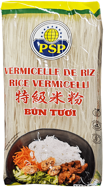 Vermicelles de riz légères et fondantes, idéales pour rouleaux de printemps, soupes, salades ou plats sautés asiatiques.