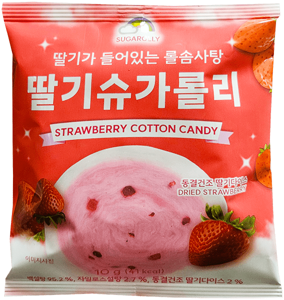 Barbe à papa à la fraise à la texture légère et aérienne au goût doux et intensément fruité.
