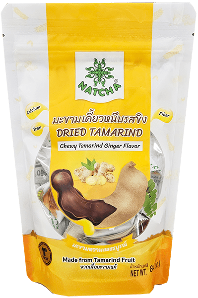 Confiserie acidulée à mâcher au tamarin aromatisée au gingembre.