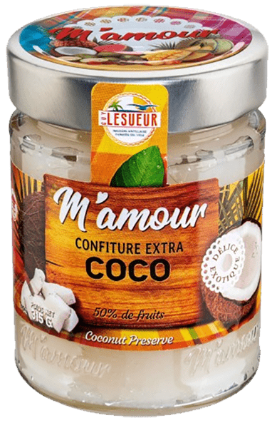 Confiture de noix de coco à la texture onctueuse et au goût doux et exotique pour tartines, crêpes ou desserts gourmands.