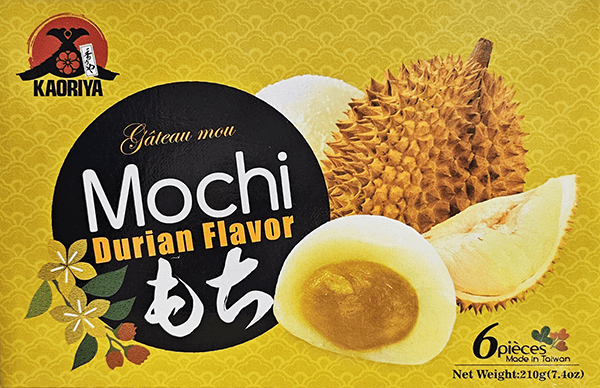 Petits mochis japonais à la pâte de riz gluant fourrés d’un cœur crémeux au durian.