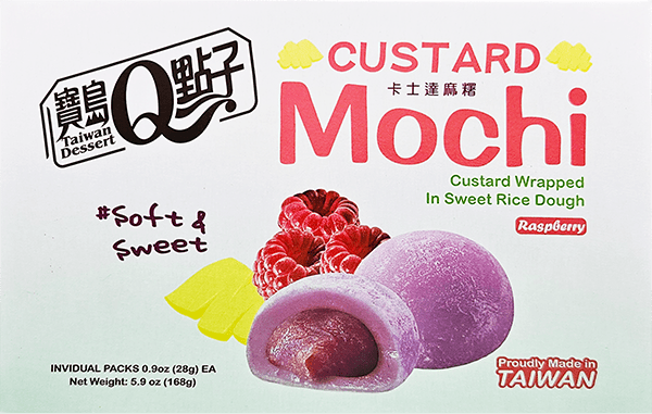 Mochis moelleux à la pâte de riz gluant fourrés d’une garniture fruitée à la framboise acidulée.