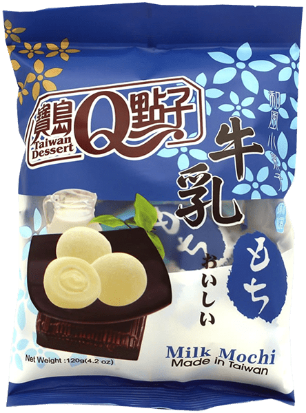 Petits mochis japonais à la pâte de riz gluant fourrés d’un cœur onctueux au lait.