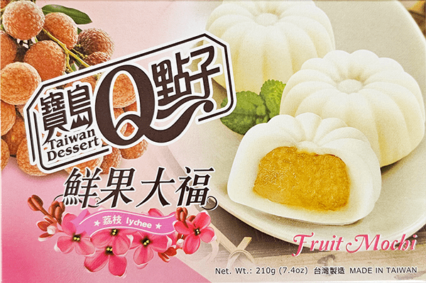 Mochis moelleux à la pâte de riz gluant garnis d’une crème fruitée au litchi.