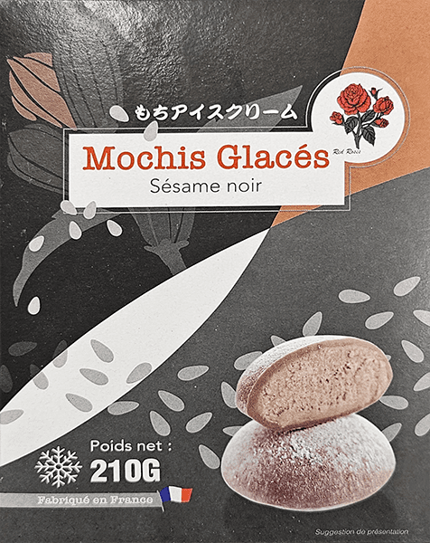 Mochis glacés à la texture moelleuse et au cœur crémeux aromatisé au sésame noir.