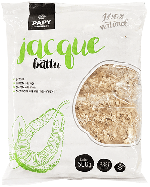 Fruit du jacquier mûr, coupé et légèrement écrasé, au goût sucré rappelant l’ananas et la mangue. Idéal pour desserts, smoothies ou plats exotiques.