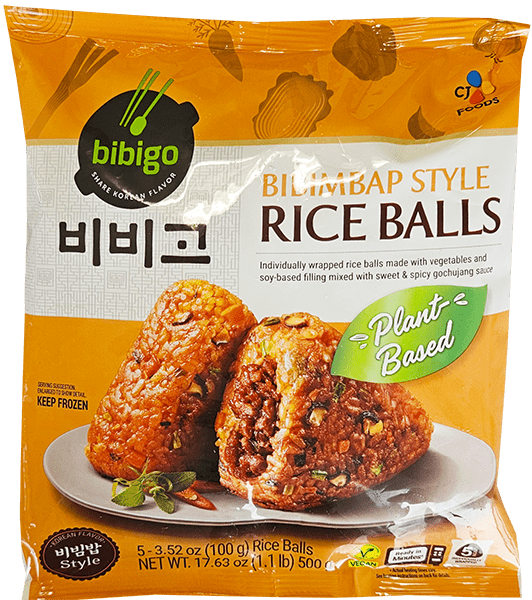 Boulettes de riz inspirées du bibimbap coréen, garnies de légumes assaisonnés et de sauce relevée. Savoureuses et pratiques à déguster à tout moment.