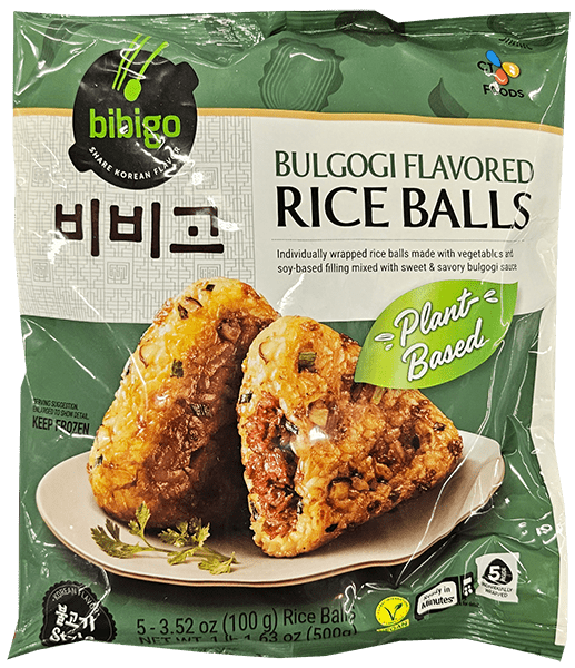 Boulettes de riz au bulgogi garnies de protéines végétales et légumes marinés. Savoureuses et pratiques à déguster à tout moment.