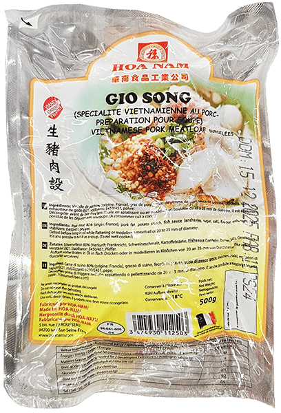 Mortadelle vietnamienne Giò Song à base de porc finement haché et assaisonné. Souple et savoureuse, parfaite pour nems, bánh mì ou plats vietnamiens.