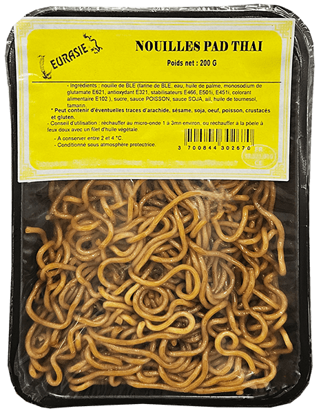 Nouilles sautées façon Pad Thaï, assaisonnées de sauce soja, poisson et tamarin. Un plat d'accompagnement sucré-salé aux saveurs exotiques.