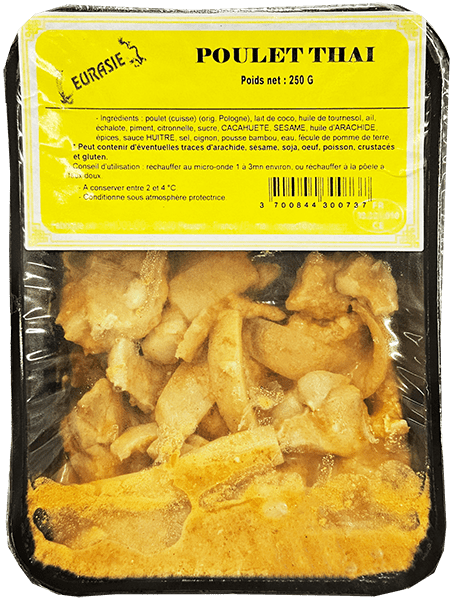 Poulet sauté façon thaï aux épices nappé d’une sauce onctueuse au lait de coco et cacahuètes. Un plat parfumé à savourer avec du riz ou des nouilles.