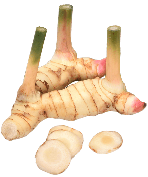 Rhizome aromatique proche du gingembre, au parfum citronné et poivré, très utilisé dans les currys, soupes et marinades.