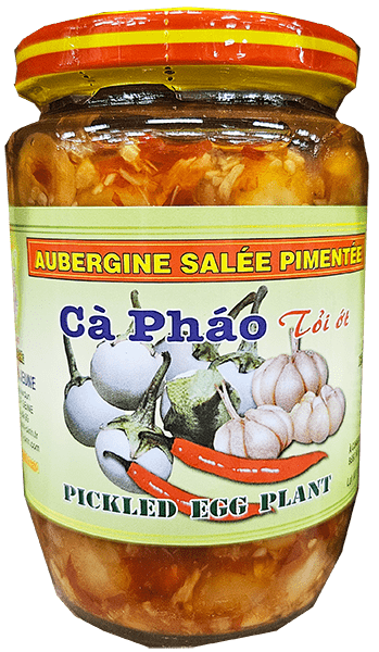 Petites aubergines blanches marinées, salées et pimentées, au goût relevé. Parfaites pour accompagner riz, nouilles ou plats asiatiques épicés.