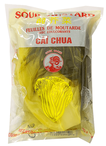 Feuilles de moutarde fermentées au goût aigre-doux et légèrement piquant. Idéales pour accompagnements, sautés, soupes ou plats de riz.