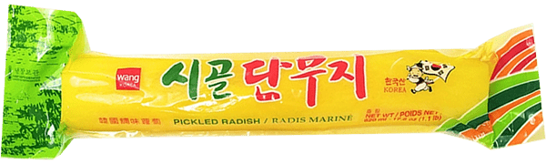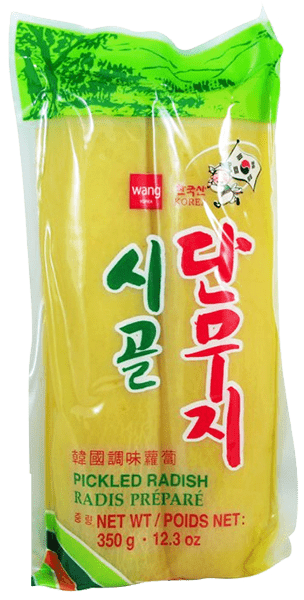 Radis entier mariné, à la saveur douce, salée et légèrement sucrée. Idéal pour gimbab, bibimbap et plats coréens.