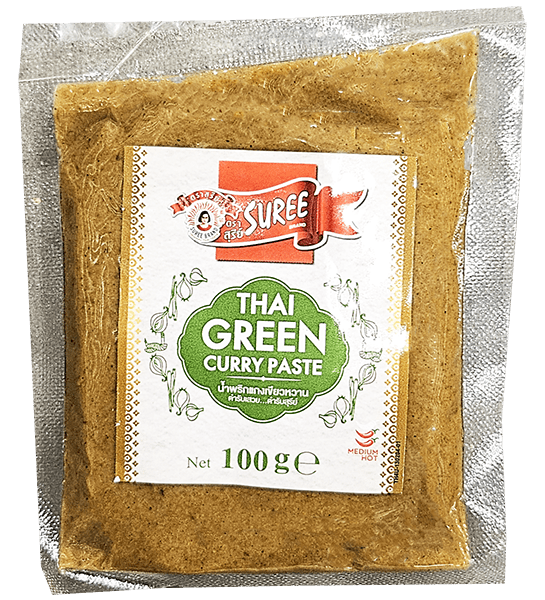 Pâte thaïlandaise relevée à base de piments verts, herbes et épices fraîches. Idéale pour préparer des currys verts parfumés, sautés, marinades et plats mijotés.