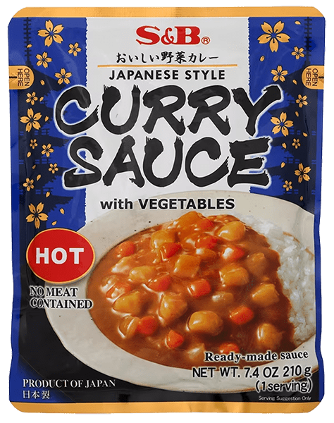 Sauce japonaise épaisse et relevée, cuisinée avec des légumes. Idéale pour préparer un curry japonais épicé avec riz, viandes ou plats mijotés.