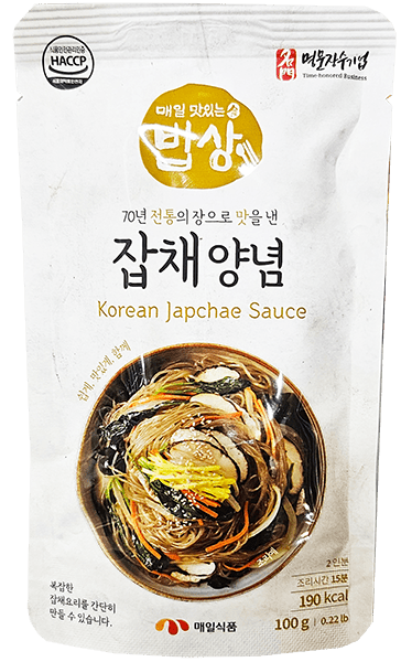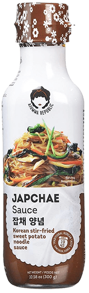 Sauce coréenne sucrée-salée à base de sauce soja et huile de sésame spécialement conçue pour parfumer les nouilles de patate douce sautées Japchae.